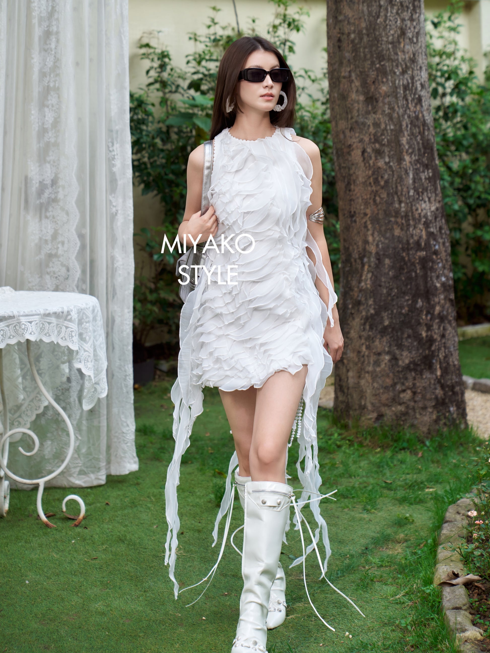 层层轻薄的荷叶纱像“花瓣”一样叠落