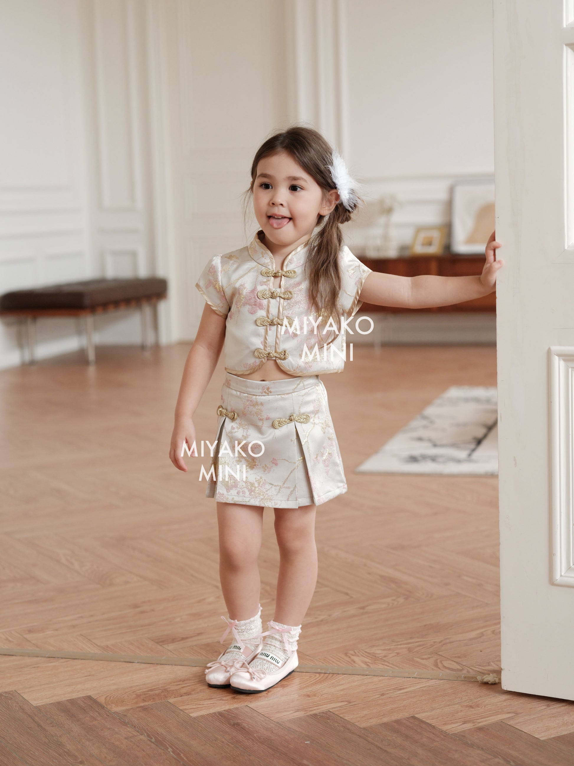 【小女团】Roseanne Cheongsam Girl Skirt in Silver 小女孩银香槟裙子 ( Skirt Only)