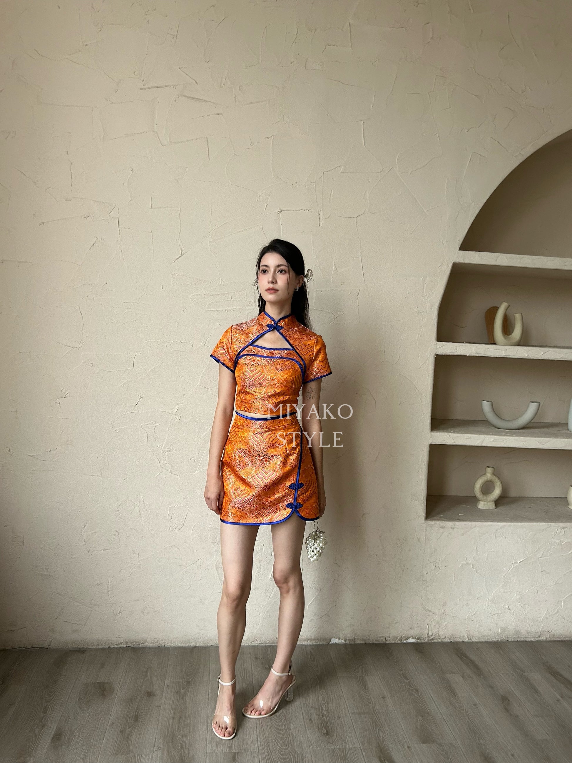 【龍華富貴】 Royal Cheongsam Mini Skirt in Orange 橙风破浪 (裙子ONLY)